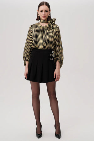 Desenli Fular Yaka Uzun Kollu Regular Bluz