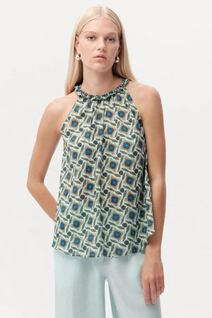 Halter Yaka Desenli Kolsuz Regular Çok Renkli Bluz