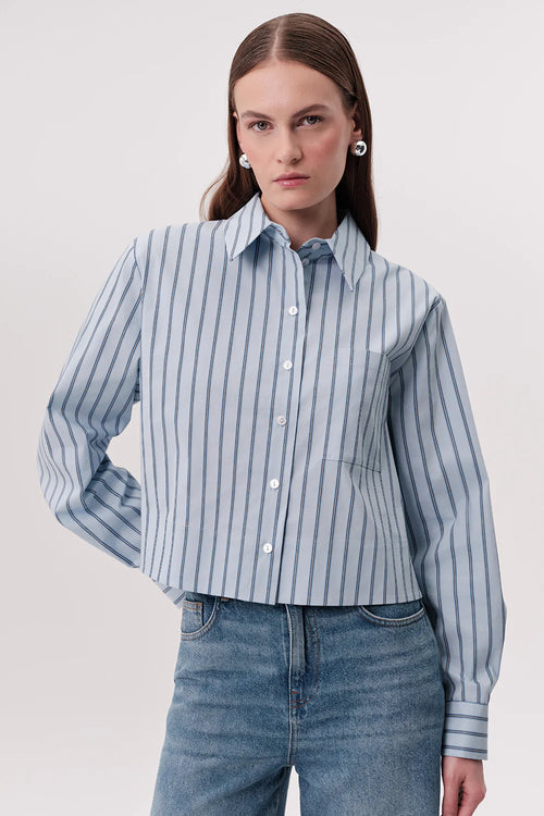 Kısa Kollu Bele Oturan Pileli Crop Regular Kemik Gömlek