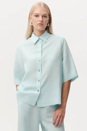 Gömlek Yaka Düğmeli Kısa Kollu Regular Turkuaz Gömlek