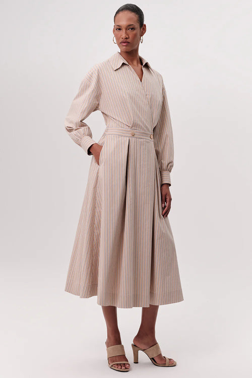 Gömlek Yaka Truvaker Kol Kuşaklı Regular Midi Çok Renkli Elbise