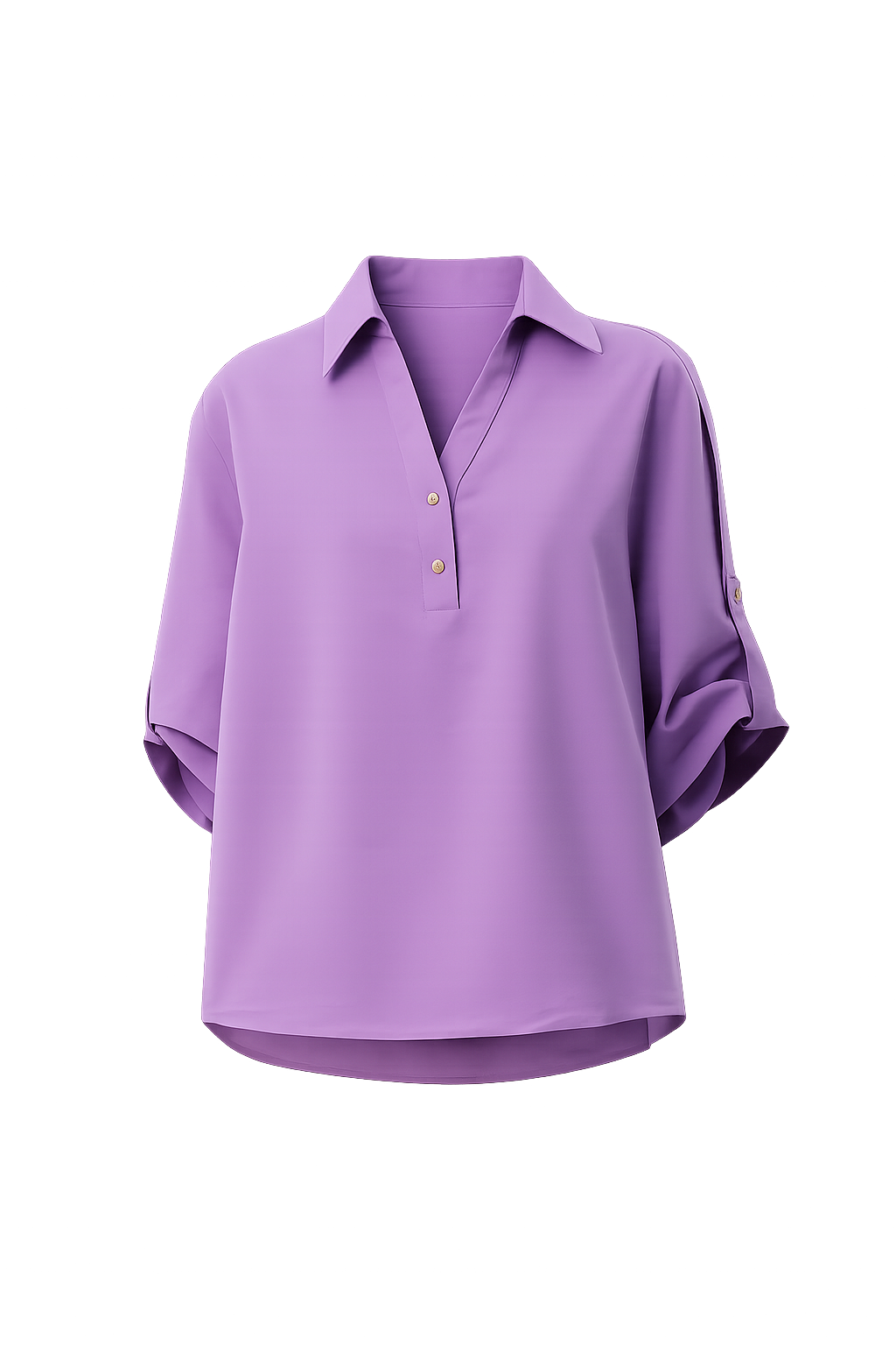 Gömlek Yakalı Apoletli Kısa Kollu Düğmeli Regular Lila Bluz