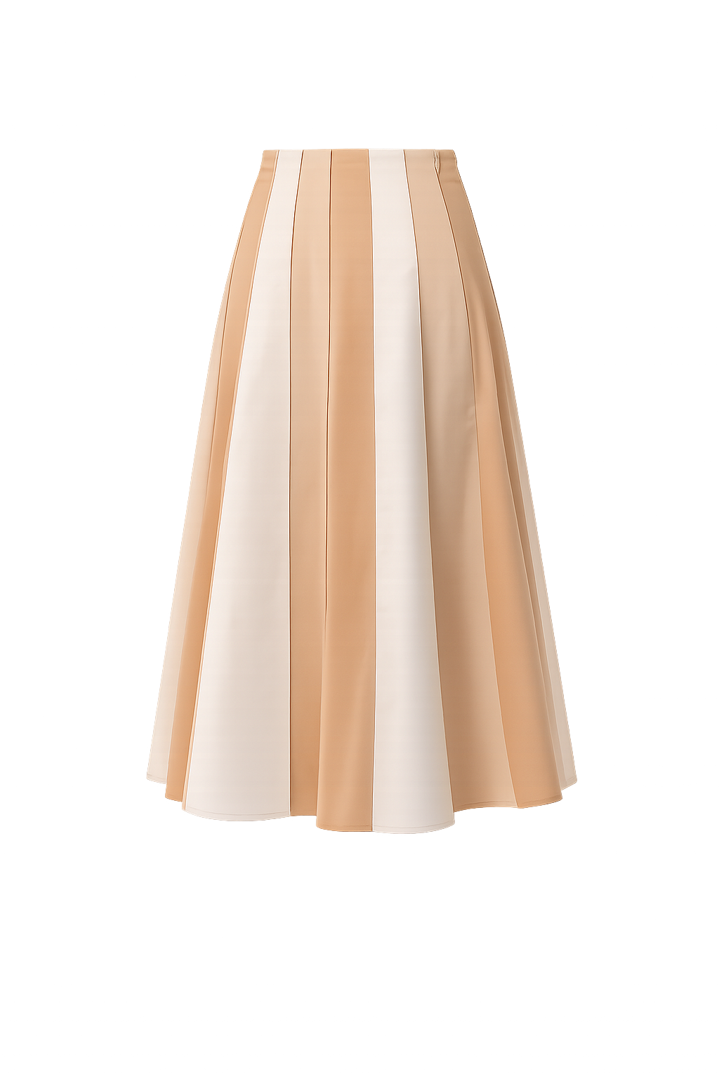 Bele Oturan Çok Parçalı Kloş Midi Camel Etek