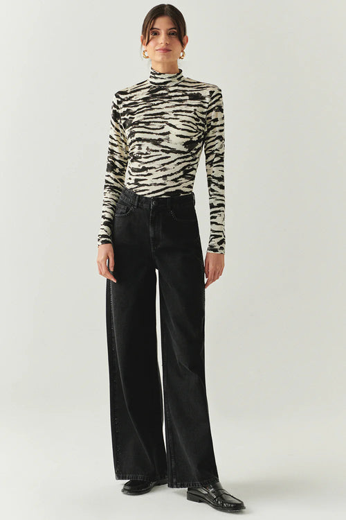 Taş Detaylı Cepli Regular Geniş Paça Siyah Denim Pantolon